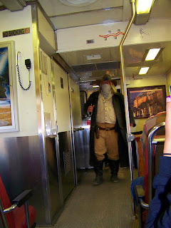 On the train ride home the train got stopped by "robbers"...they halted the train, and got on, and here they are............."LOOK OUT"!!!!!!!!!! HOLD ON TO YOUR MONEY!!!!!!!!!!!!